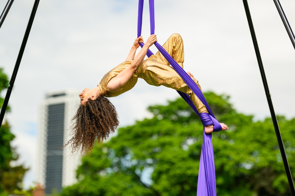 Our circus camps are fun-filled days for all levels of circus kids and youth over 7 years of age. Circus campers will be supported and encouraged as they try a variety of circus disciplines. Throughout the week campers will have the opportunity to learn aerial silks, aerial hoop, partner acro, tumbling basics, juggling, and hula hooping. We have our lunch outdoors in Greenwood Park (weather permitting), which has a splash pad for hot days.