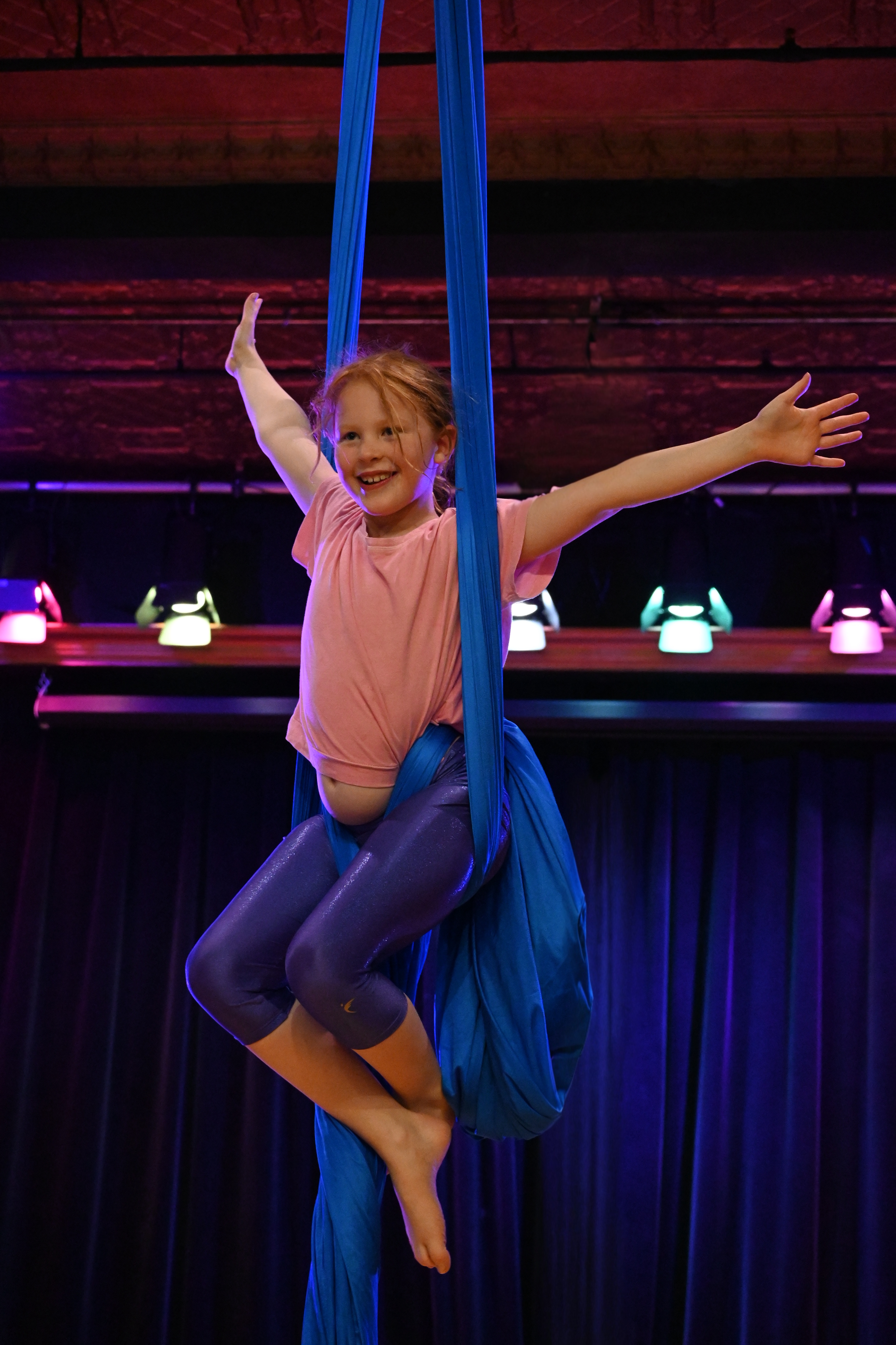 The performance camp is a chance for our more advanced students to spend a week experimenting and innovating to create a circus show for presentation on the Friday at the end of camp. Under the instruction of professional circus performers, campers will have the opportunity to learn new apparatuses and explore partner aerial and ground work as well as dramatic storytelling. The schedule for this camp is a bit different from our regular schedule with more intensive performance training but follows the same general pattern.